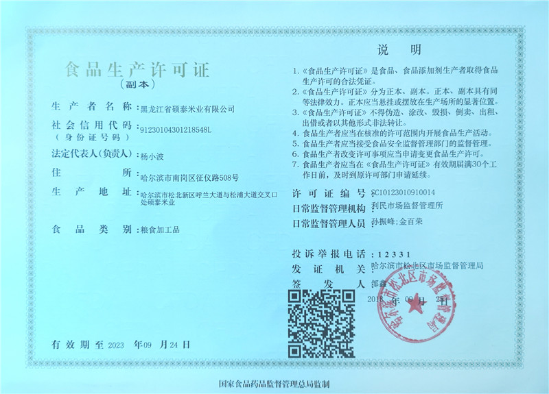 五常生產廠址:中國?哈爾濱五常市安家鎮(zhèn)民主